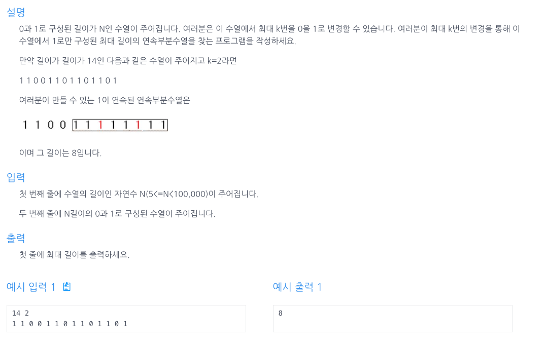 -윈도우 내의 0의 개수가 K 를 초과하면 lPtr을 증가시켜 윈도우를 축소한다.
