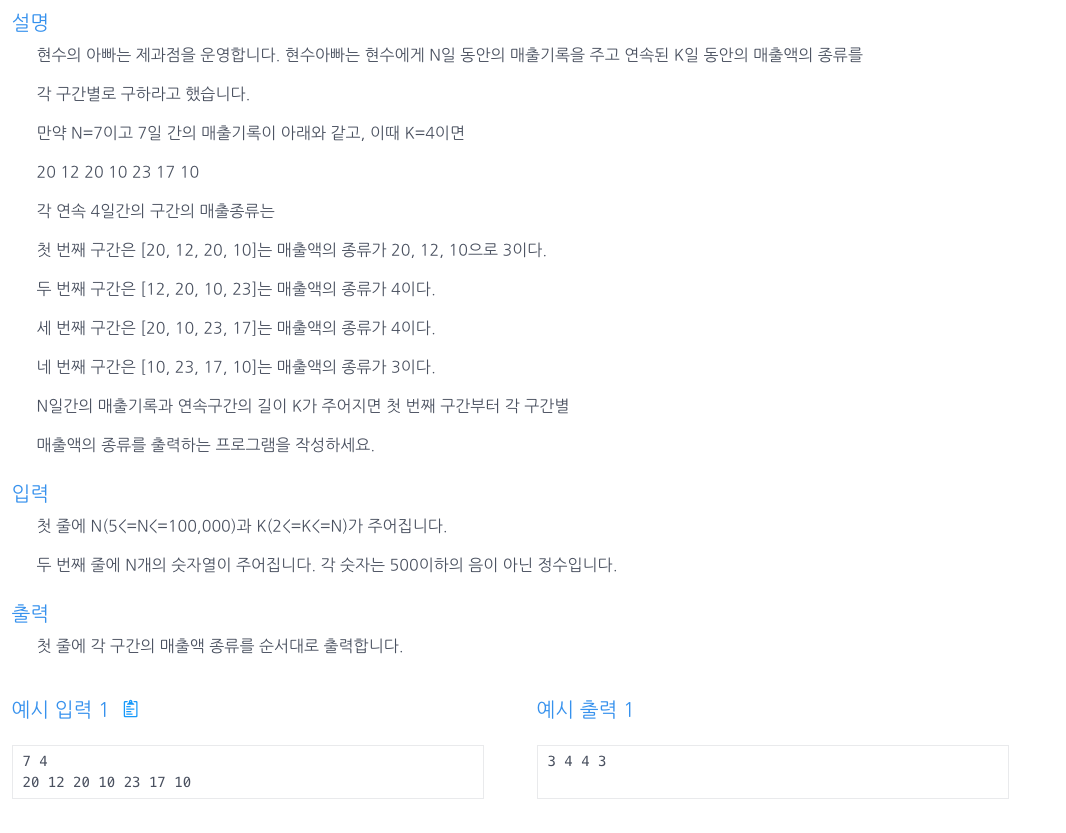 result[rPtr - K + 1] = map.size();