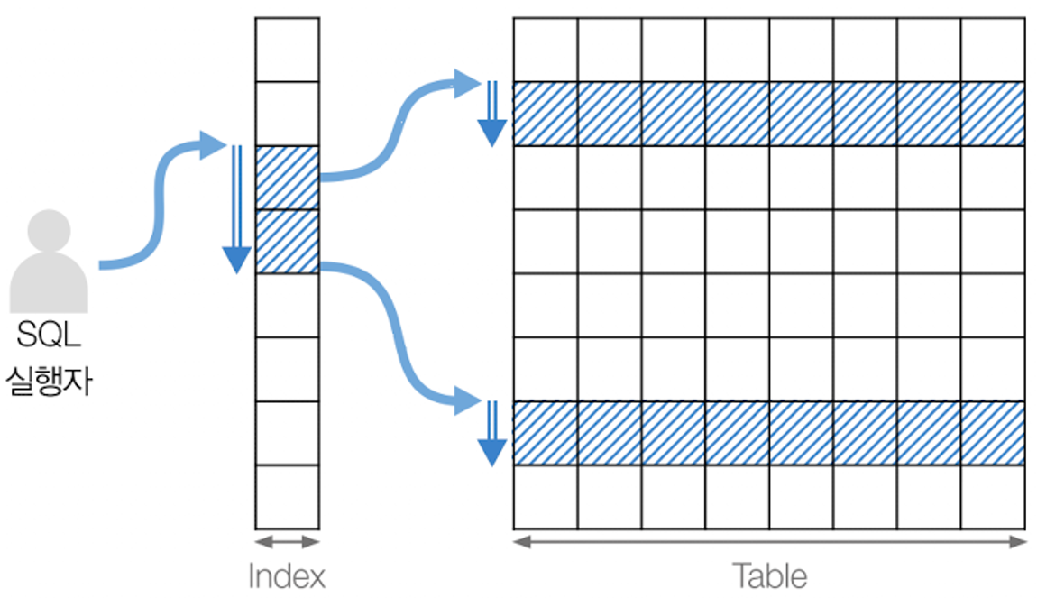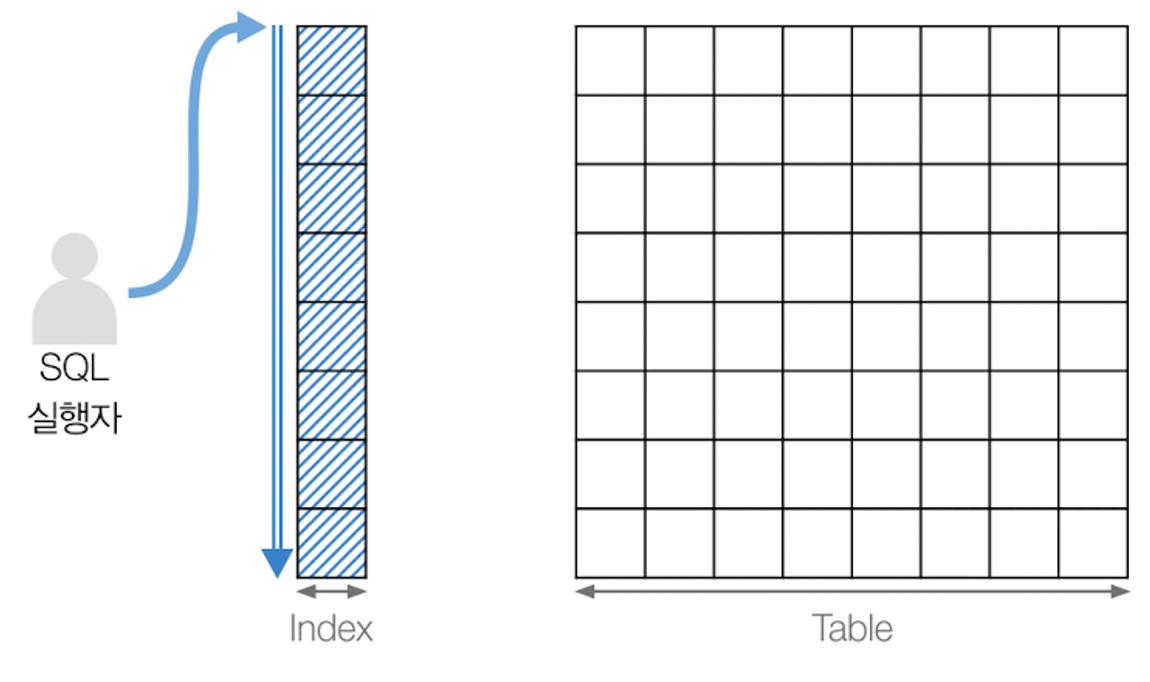 - 인덱스가 없다면 특정 값을 일일이 다 뒤져야 한다. 그래서 1건의 데이터를 바로 찾을 수 없다.