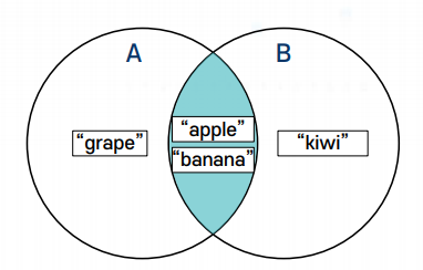 B = {"apple","banana","grape","kiwi"}