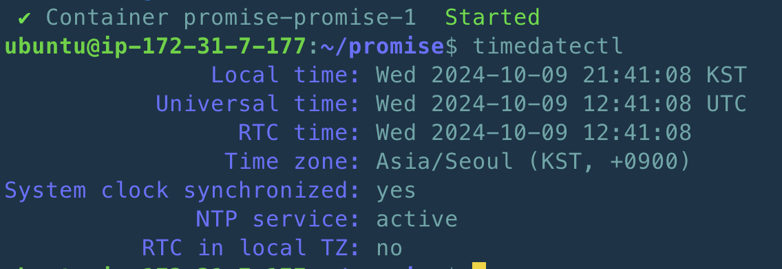 이렇게 컴포즈 파일을 설정하고 다시 실행해보니 정상적으로 타임존이 동기화된 것을 확인할 수 있었다.