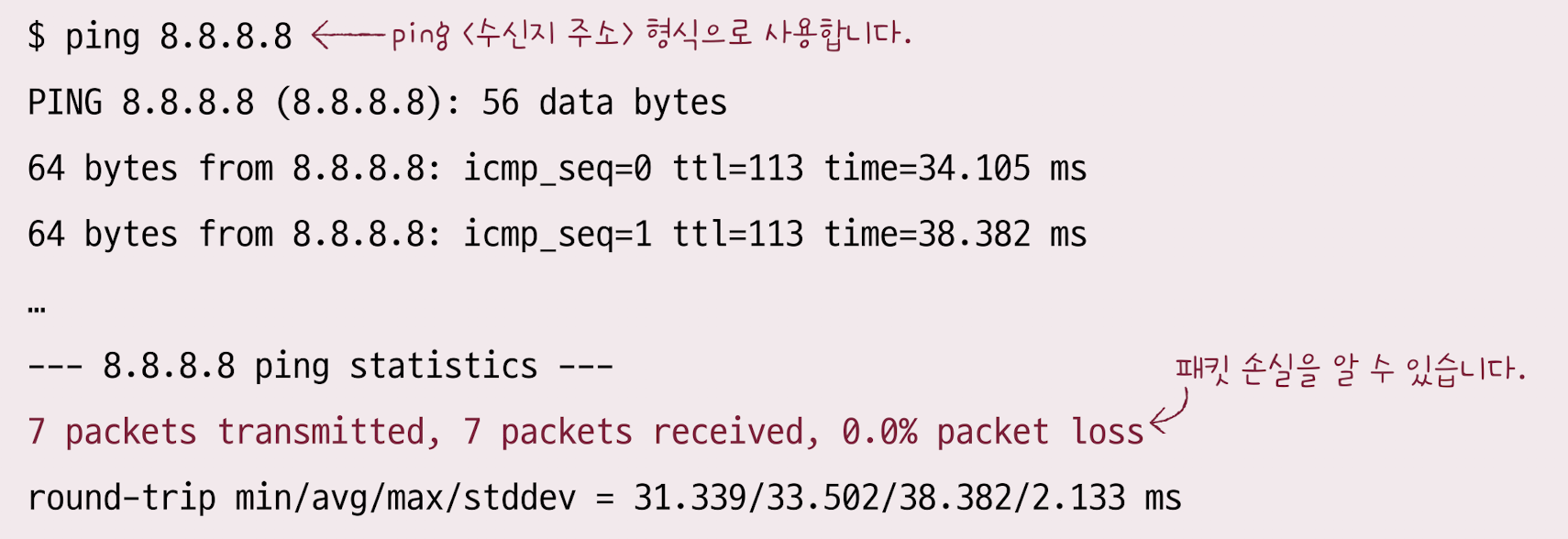 - 패킷 손실: 패킷 손실(packet loss)은 네트워크에서 전송된 패킷이 목적지에 도달하지 못하는 상황을 말한다. 이는 네트워크 과부하나 장애로 인해 발생할 수 있으며, 손실된 패킷의 비율로 표현된다.