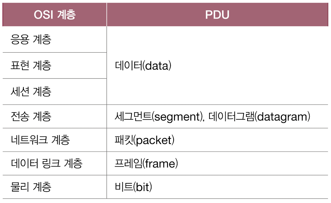 - 각 계층에서 송수신되는 메시지의 단위를 PDU라고 한다.
