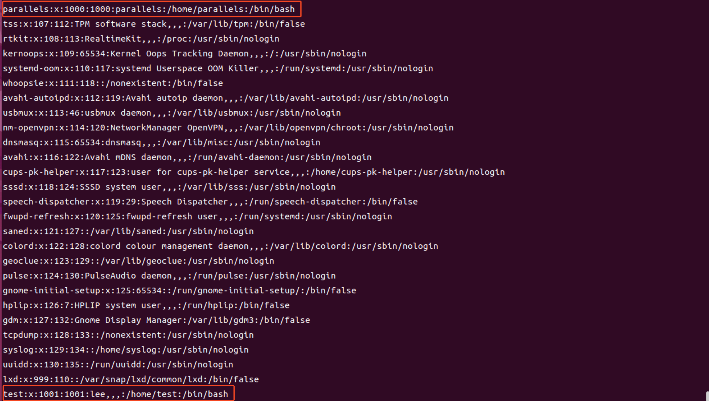 cat /etc/passwd
