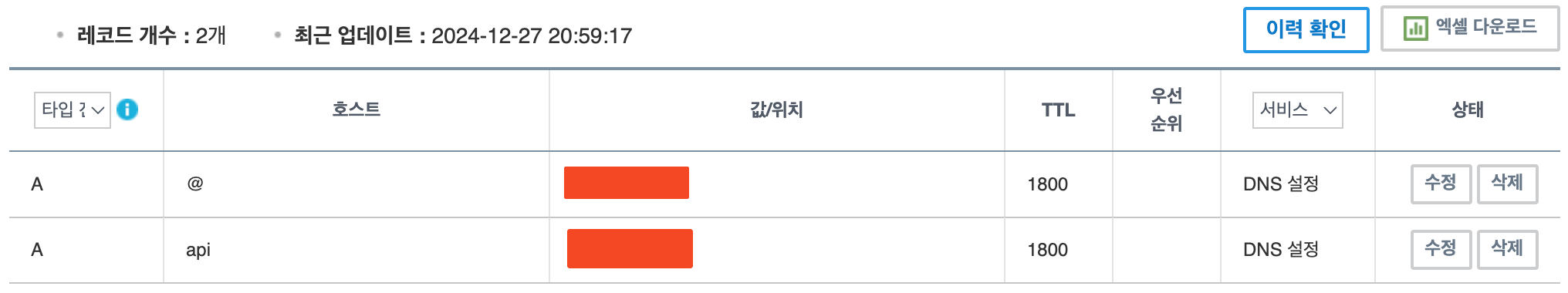 sudo certbot --nginx -d <기본 도메인> -d <api 도메인>