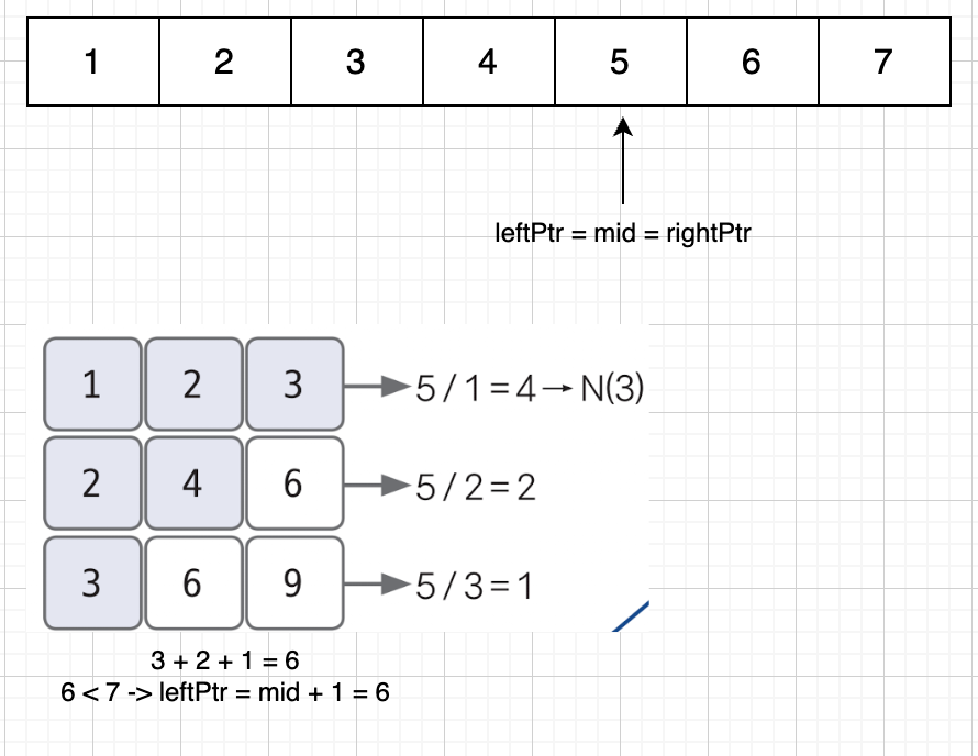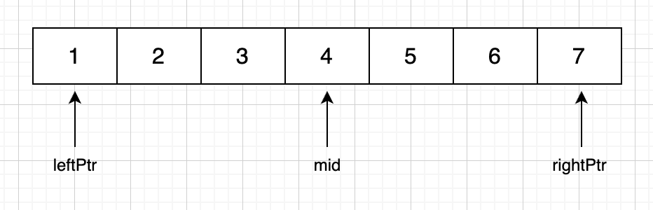 - 이진 탐색의 끝을 rightPtr이라 표현하고 7로 정한다.