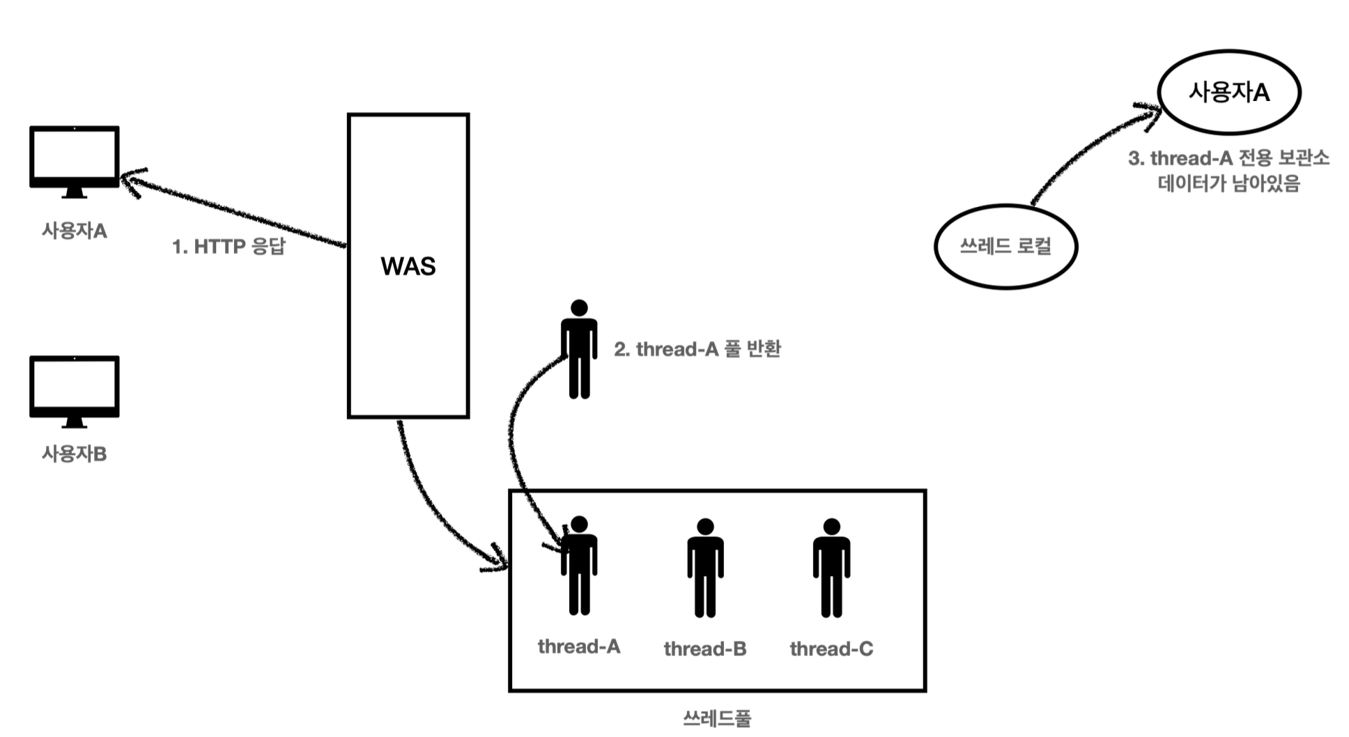 - 이때 이전 요청에서 ThreadLocal에 저장한 값이 삭제되지 않으면, 다음 요청에도 남아 있게 된다.
