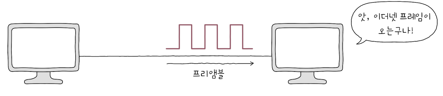 - 프리앰블(preamble)은 이더넷 프레임의 시작을 알리는 8바이트(64비트) 크기의 정보이다.