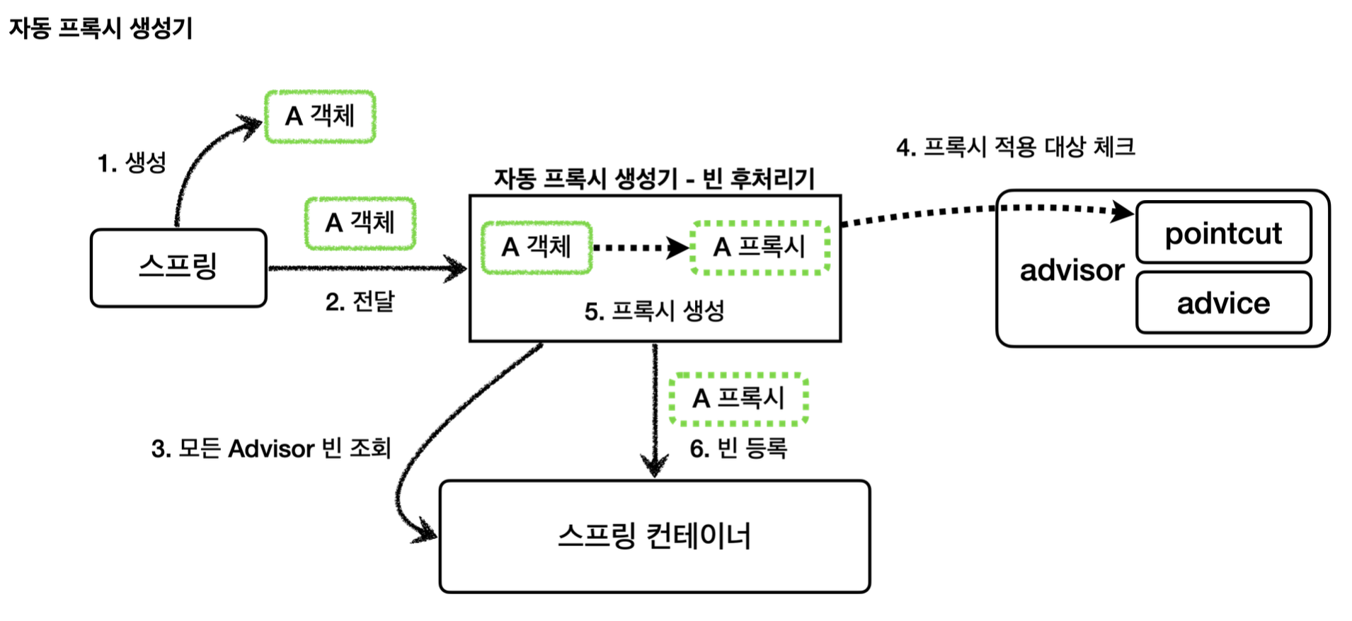 - 이름 그대로 자동으로 프록시를 생성해주는 빈 후처리기이다.