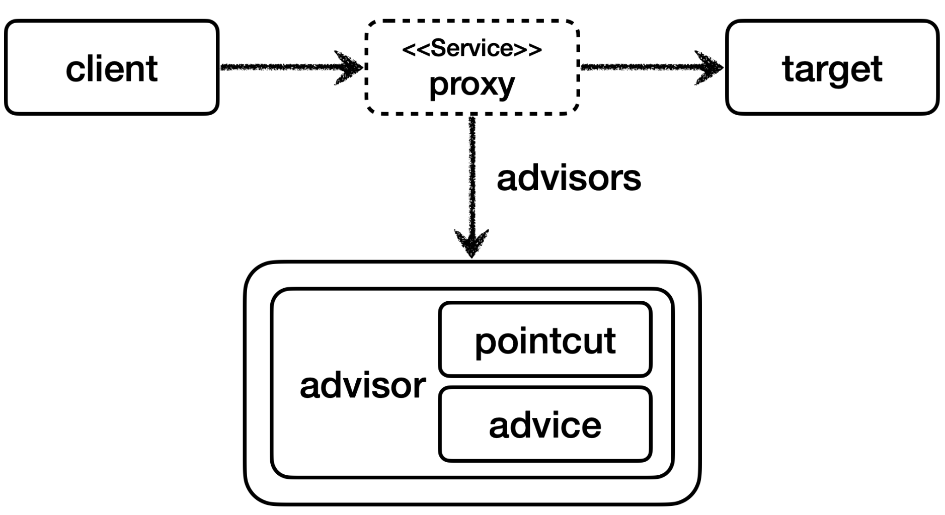 - Advisor 안에는 Pointcut 과 Advice 가 이미 모두 포함되어 있다. 따라서 Advisor 만 알고 있으면 그 안에 있는Pointcut 으로 어떤 스프링 빈에 프록시를 적용해야 할지 알 수 있다. 그리고 Advice로 부가 기능을 적용하면 된다.