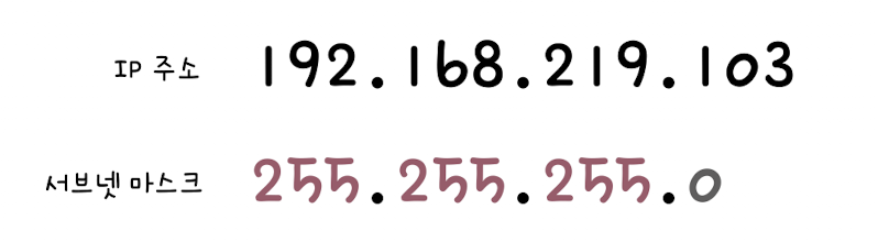이 둘에 대해 비트 AND 연산을 수행하면 아래 결과 처럼 네트워크 주소 192.168.219.0을 구할 수 있다.