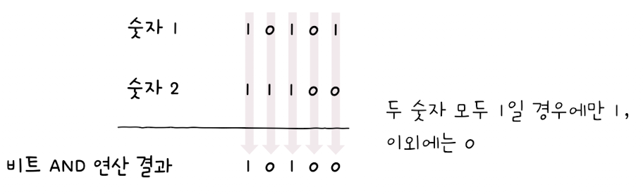 비트 AND 연산 피연산자가 모두 1인 경우에는 1, 아닌 경우에는 0이 되는 연산