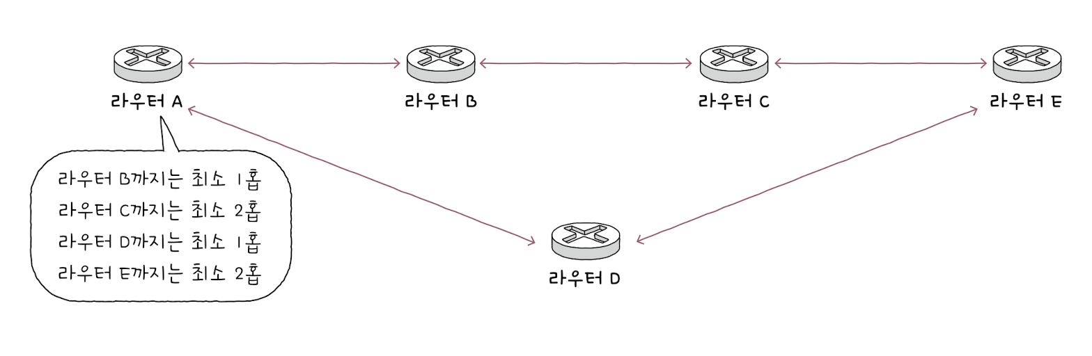그리고 여기서 말하는 거리는 패킷이 경유한 라우터의 수(=홉의 수)를 의미한다.