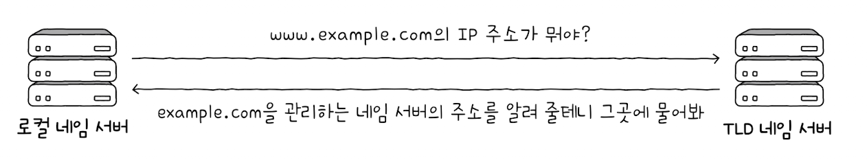 - TLD 네임 서버는 같이 질의에 대해 TLD의 하위 도메인 네임을 관리하는 네임 서버 주소를 반환할 수 있다.