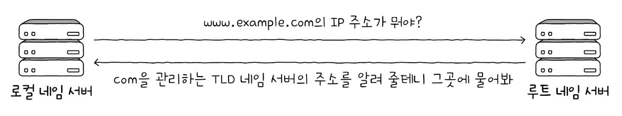 루트 네임 서버는 루트 도메인을 관장하는 네임 서버로, 질의에 대해 TLD 네임 서버의 IP 주소를 반환할 수 있다.