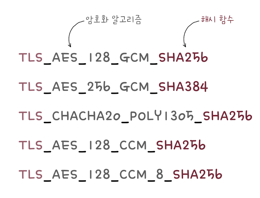 지원 TLS 버전, 암호화 스위트, 키 생성에 필요한 난수 등이 포함