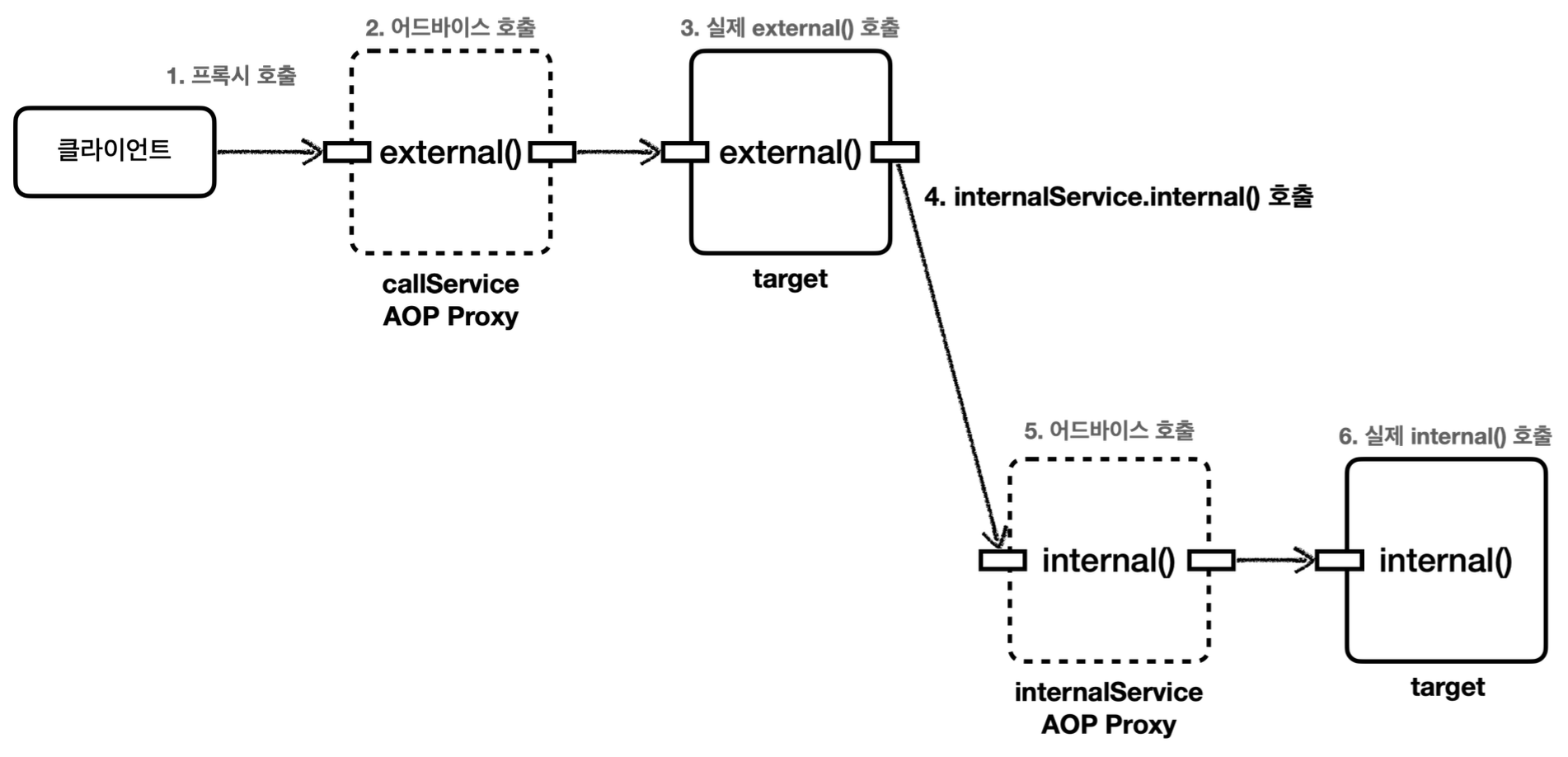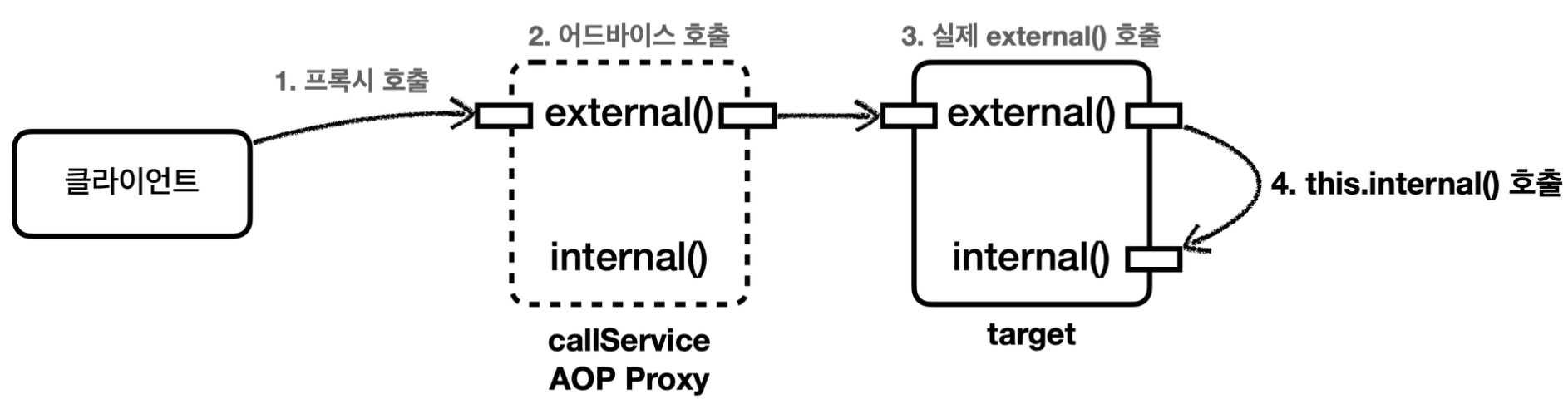 external() 메서드 안에서 this.internal()을 직접 호출하는 게 아니다.