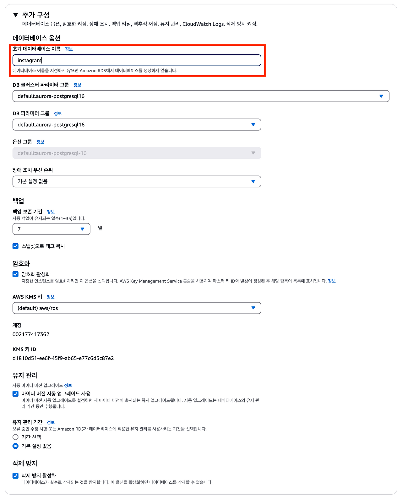 3. RDS 인스턴스 생성