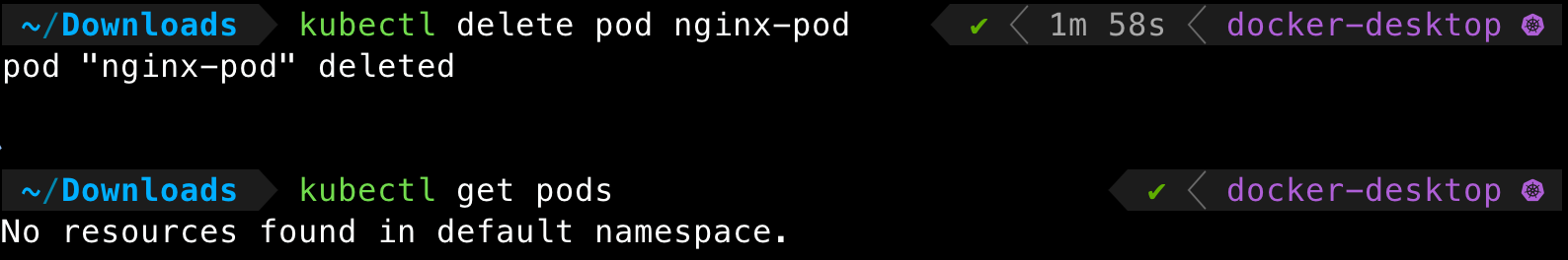 kubectl delete pod nginx-pod # nginx-pod라는 파드 삭제
