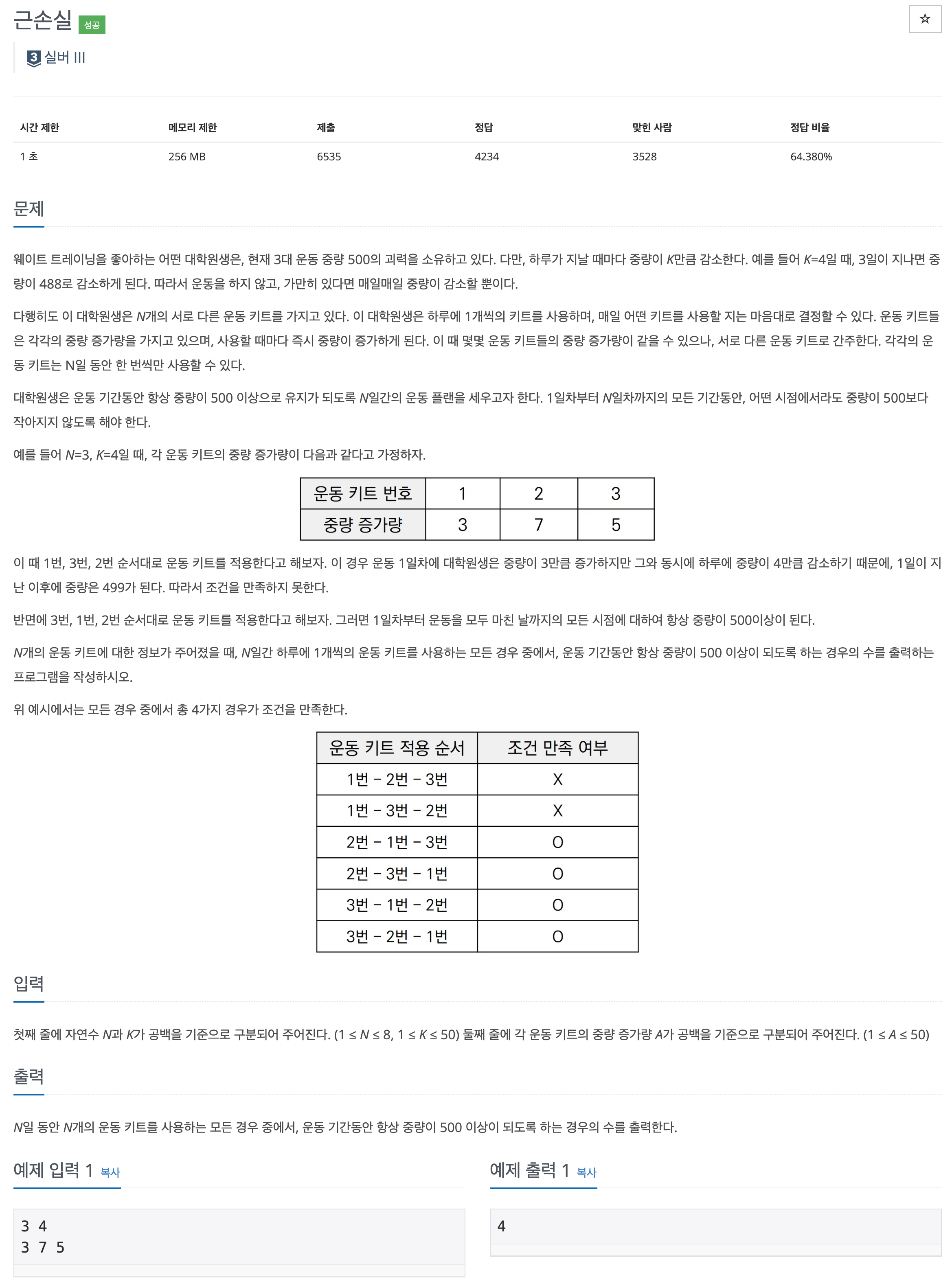 원본 링크 : https://www.acmicpc.net/problem/18429