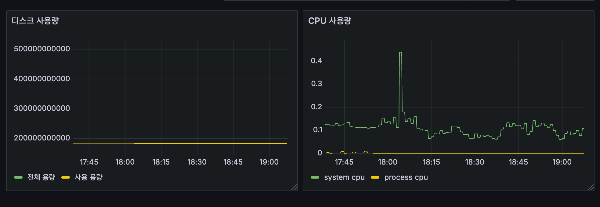 예) CPU 사용량, 메모리 사용량, 사용중인 커넥션