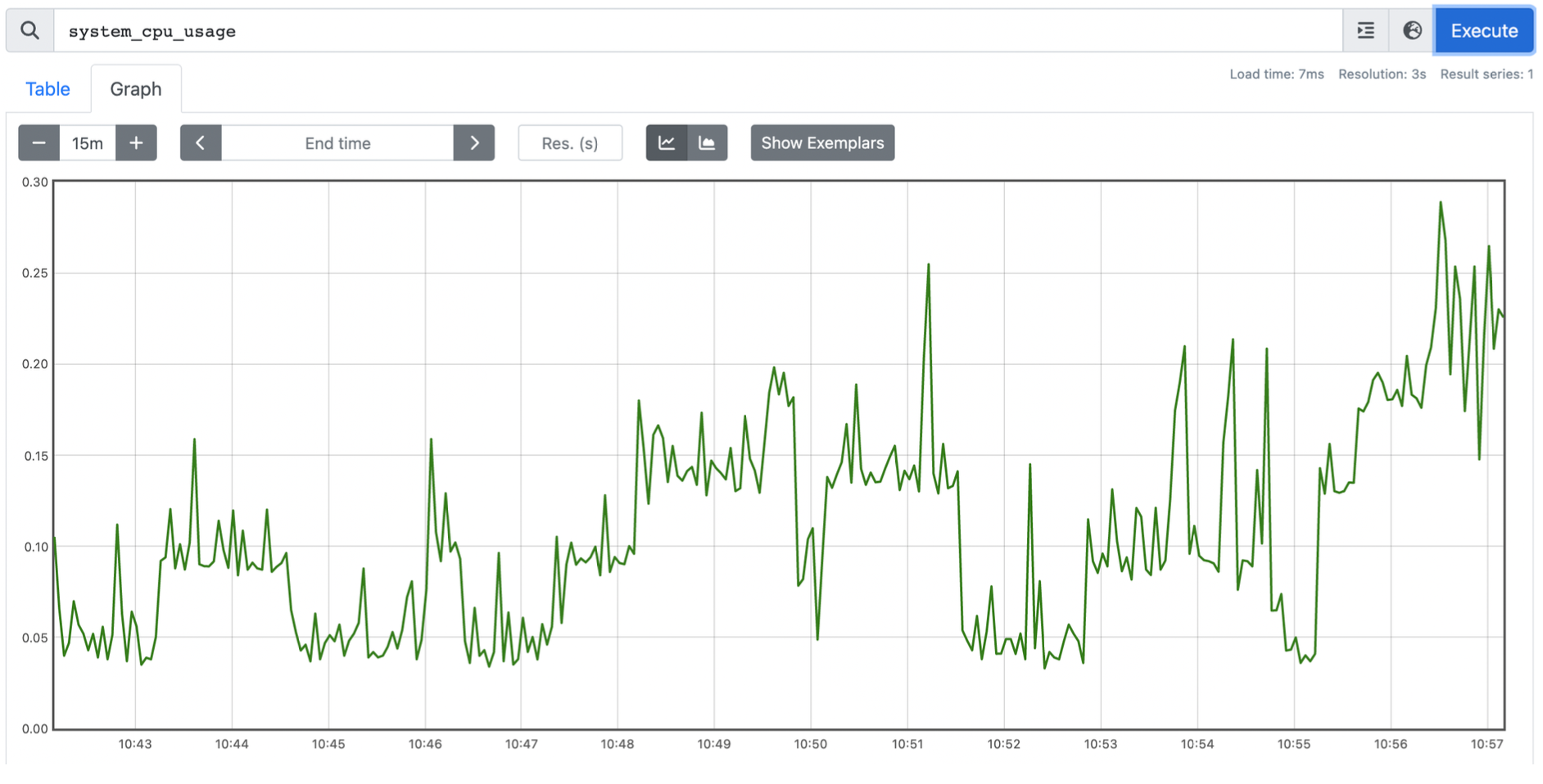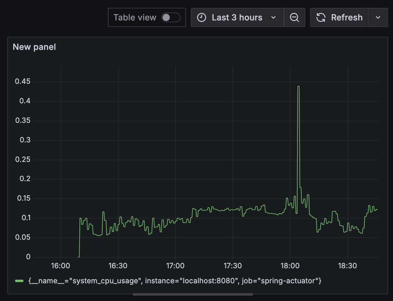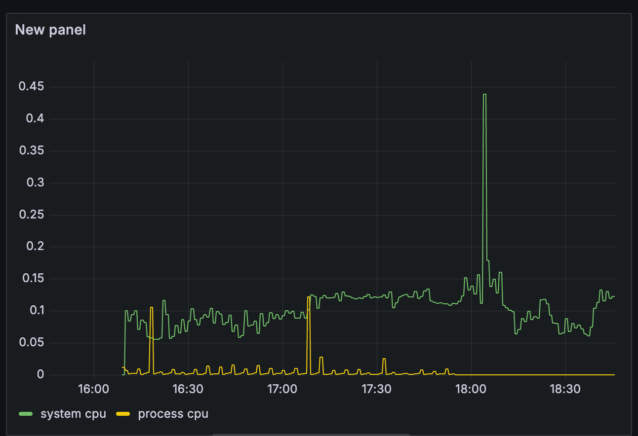 예를 들어서 대표적인 게이지인 CPU 사용량(system_cpu_usage)는 CPU 사용량의 현재 상태를 계속 측정하고 그 값을 그대로 그래프에 출력하면 과거부터 지금까지의 CPU 사용량을 확인할 수 있다.