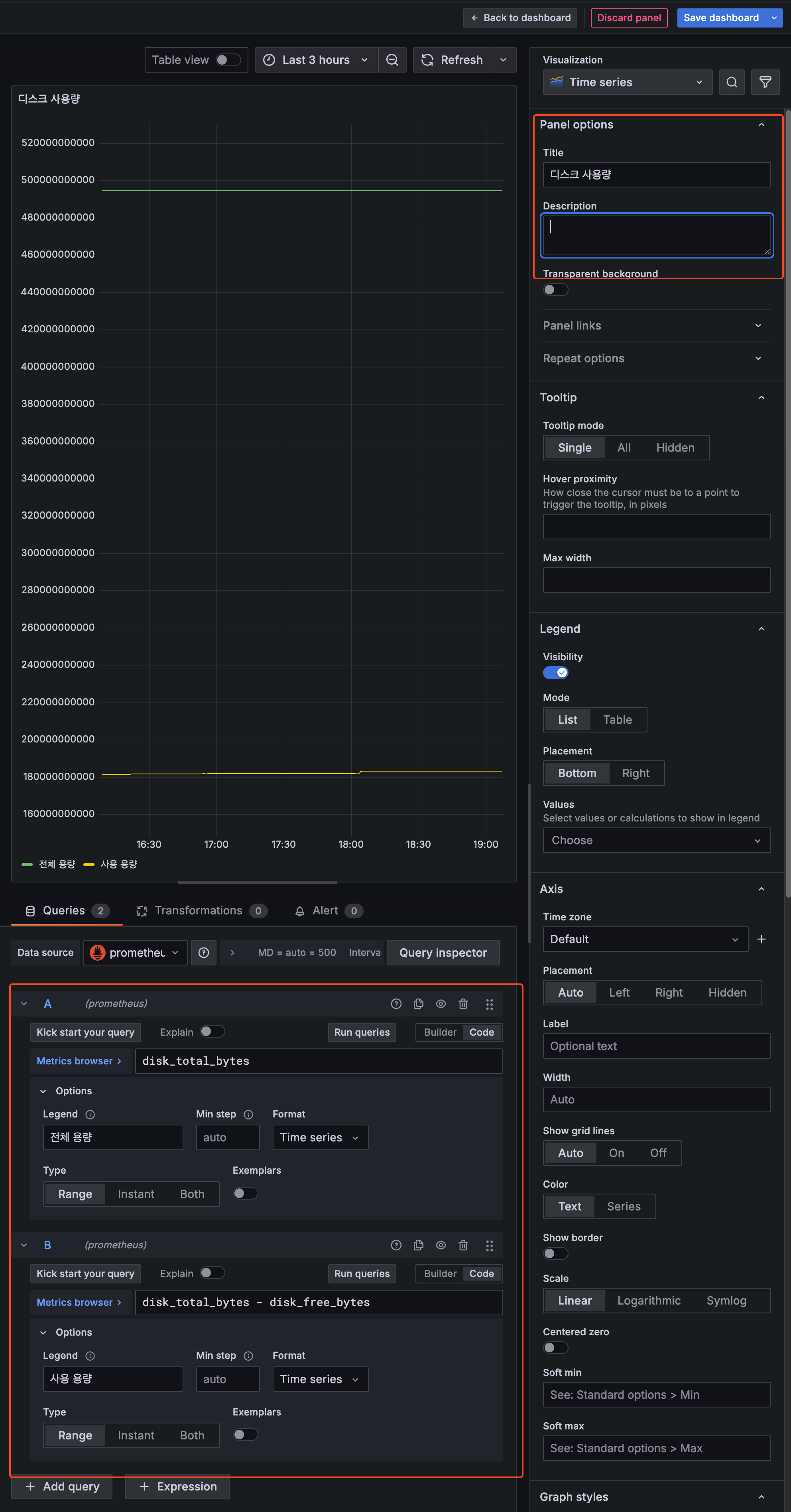 프로메테우스의 단점은 한눈에 들어오는 대시보드를 만들어보기 어렵다는 점이다. 이 부분은 그라파나를 사용하면 된다.