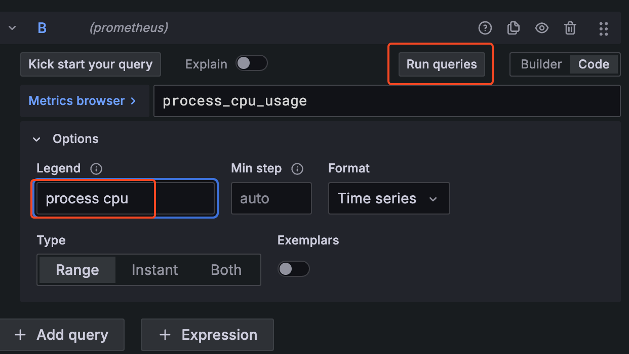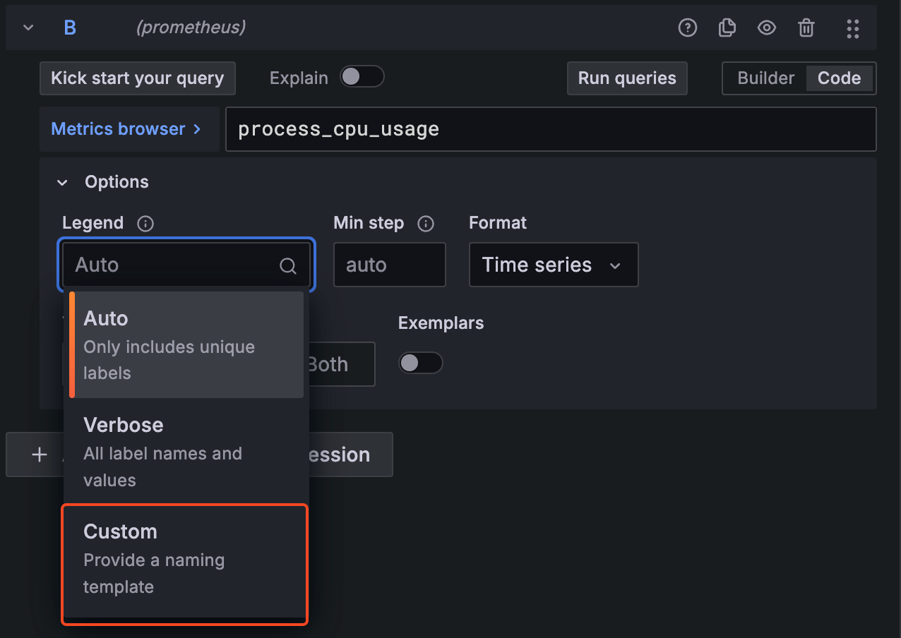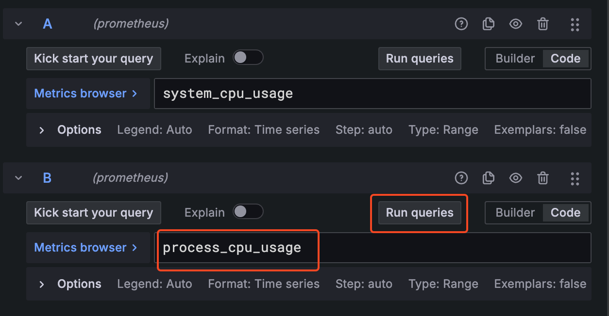 예) topk(3, http_server_requests_seconds_count) : 상위 3개 메트릭 조회
