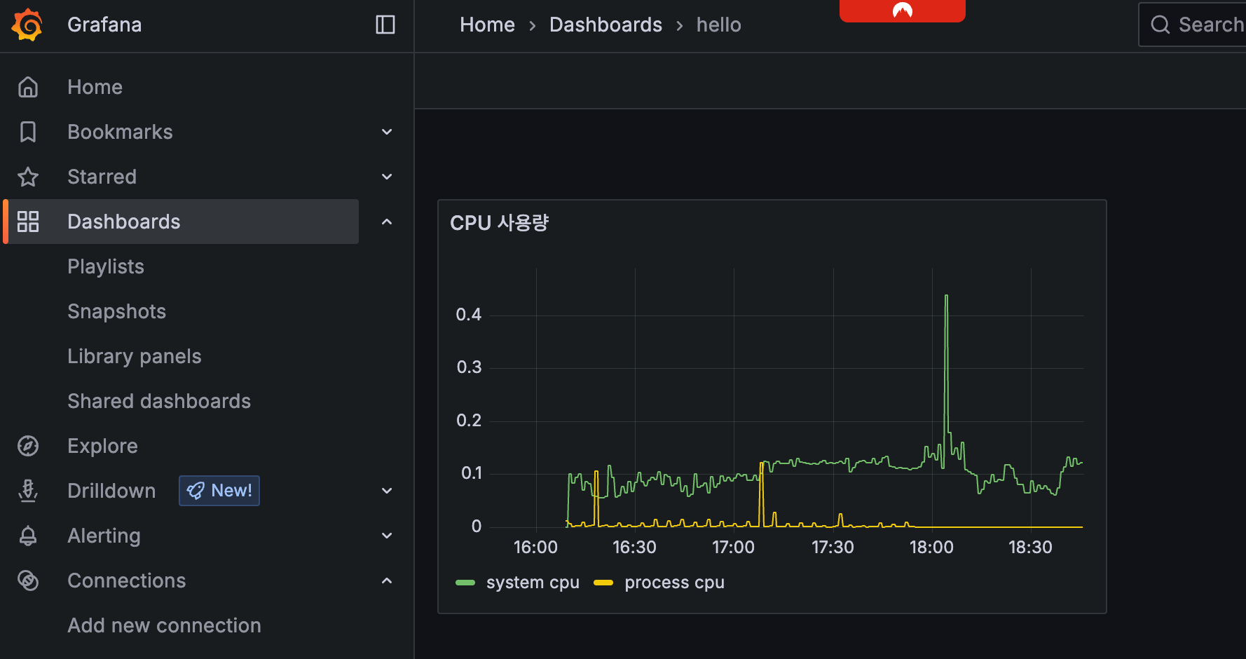 spring-actuator : 우리가 연동한 애플리케이션의 메트릭 정보이다.