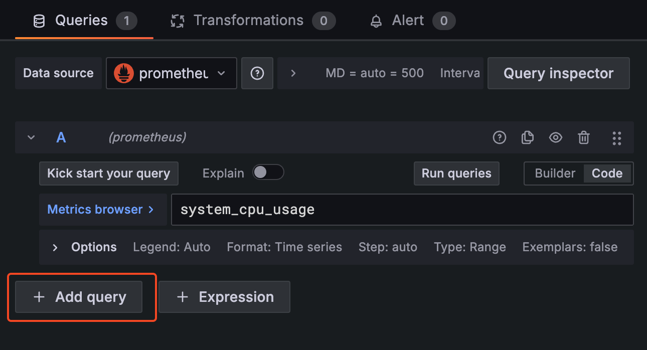 Graph -> 메트릭을 그래프로 조회 가능