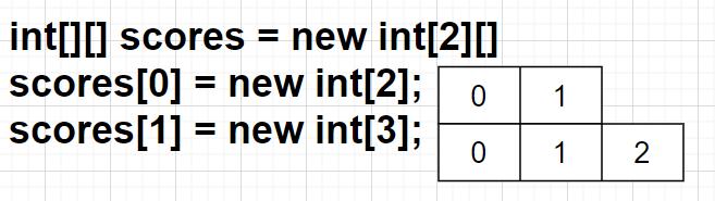 int[][] scores = {{95,80},{92,96}}; //값 목록을 이용한 2행 2열 배열 생성