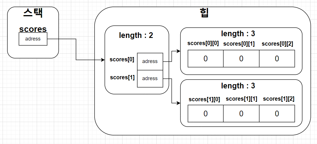 따라서 다차원 배열을 복사하기 위해서는 for문을 돌리면서 일일이 복사해주어야 한다.